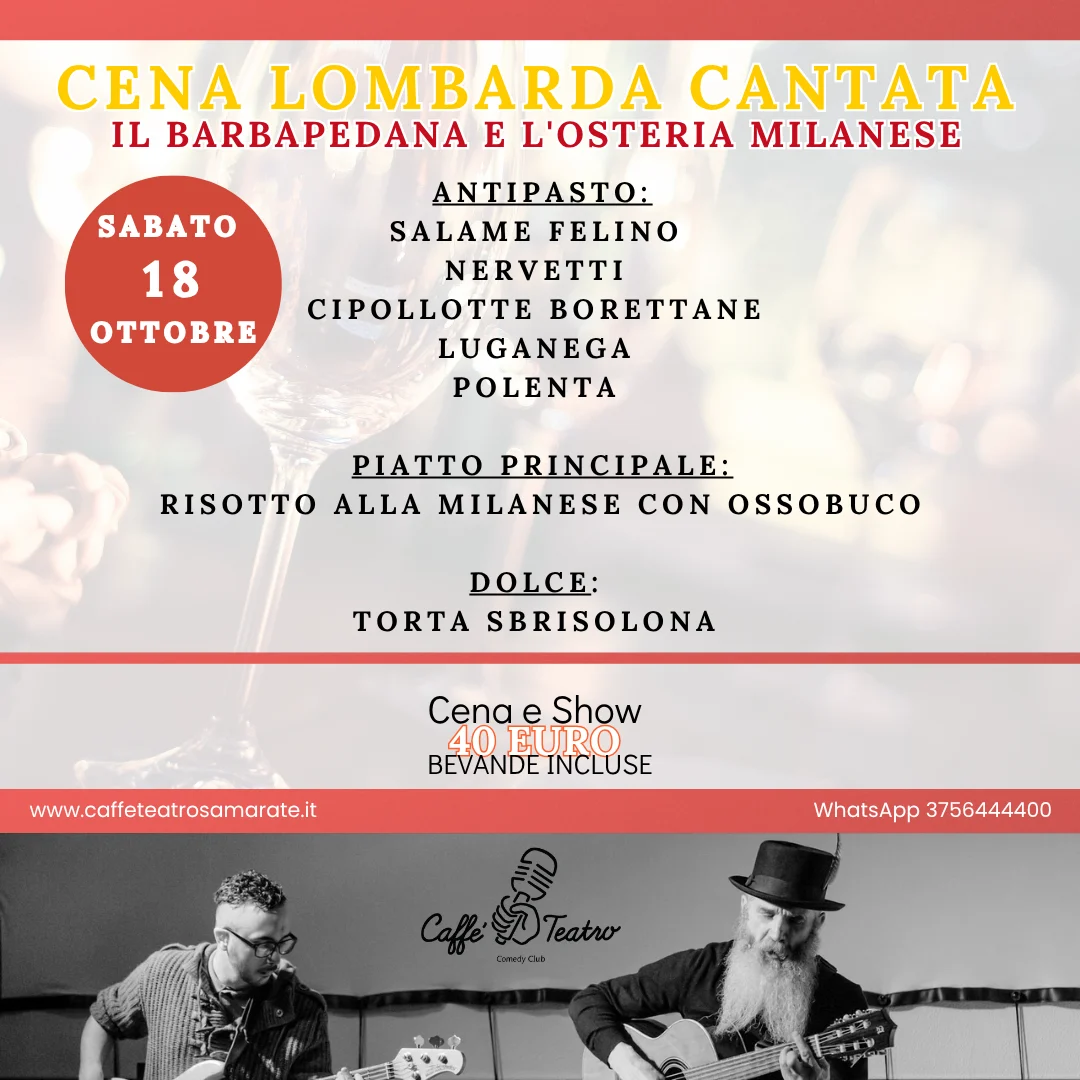 Benvenuti al “Caffè Teatro Comedy Club”, il ristorante che delizia non solo il palato, ma anche tutti gli altri sensi! Qui potrai gustare prelibatezze culinarie mentre assisti a spettacoli eclettici che vanno dal cabaret alle esibizioni musicali dal vivo. La serata prende vita con comici che ti faranno scoppiare dalle risate e illusionisti che sfideranno la realtà. Un’esperienza gastronomica e artistica unica nel suo genere, dove ogni boccone si fonde con un’esplosione di divertimento e intrattenimento. Preparati a lasciarti rapire da una sinfonia di sapori e spettacoli che renderanno la tua serata indimenticabile