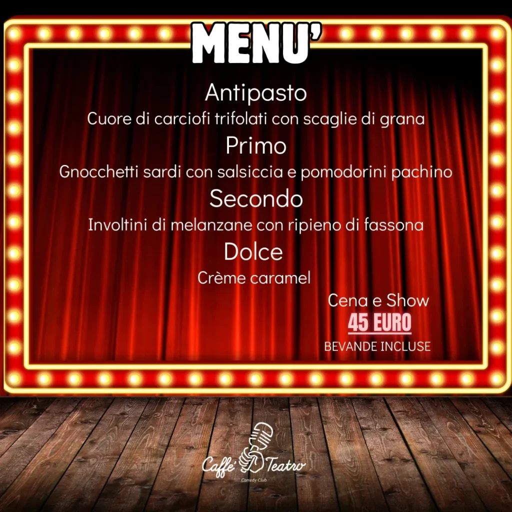 SE PRENOTI UN TAVOLO PER GODERTI DELLA NOSTRA CENA ALLA CARTA, IL BIGLIETTO DELLO SPETTACOLO PER TE SARA’ IN ESCLUSIVA DI: