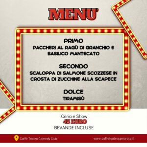 SE PRENOTI UN TAVOLO PER GODERTI DELLA NOSTRA CENA ALLA CARTA, IL BIGLIETTO DELLO SPETTACOLO PER TE SARA’ IN ESCLUSIVA DI: